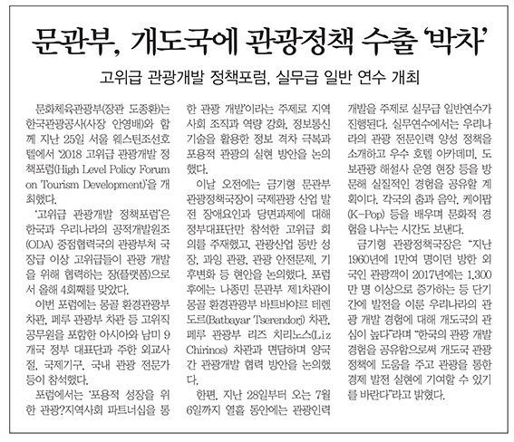 - 문관부, 개도국에 관광정책 수출 ‘박차’