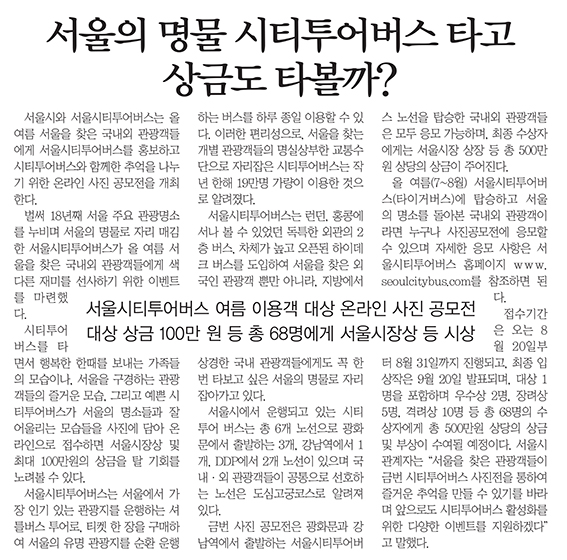 서울시티투어버스 여름 이용객 대상 온라인 사진 공모전