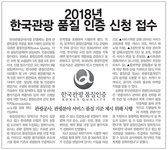 관광공사, 관광분야 서비스 품질 기준 제시 위해 시행