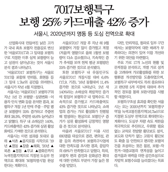 - 7017보행특구 보행 25% 카드매출 42% 증가