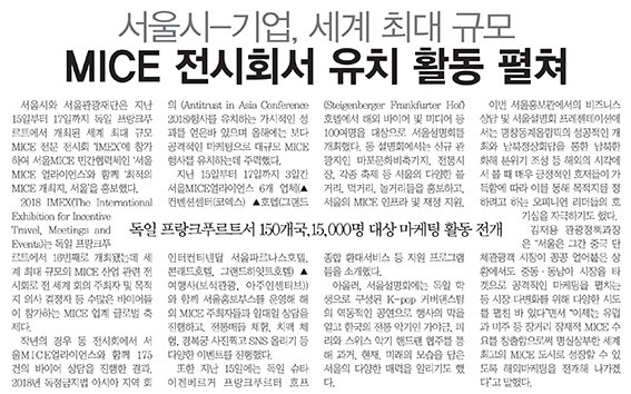 - 서울시-기업, 세계 최대 규모 MICE 전시회서 유치 활동 펼...