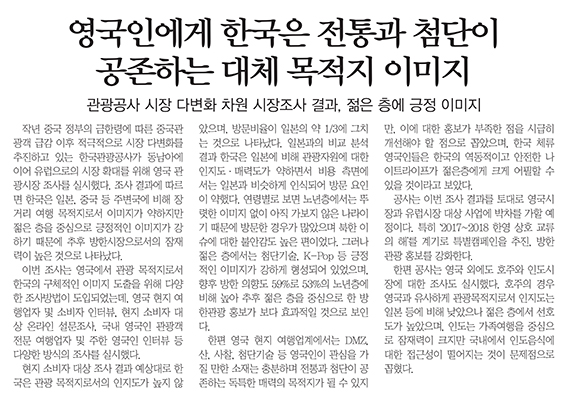 관광공사 시장 다변화 차원 시장조사 결과, 젊은 층에 긍정 이미지