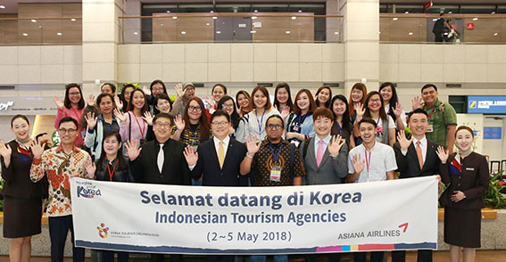지난 2일 인천국제공항에서 있은 인도네시아 대형 여행사 관계자 팸투어 참가자 환영 행사에서 한국관광공사 등의 ...[제1028호]2018-05-04 09:13