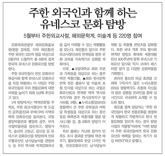- 주한 외국인과 함께 하는 유네스코 문화 탐방