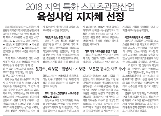 - 2018 지역 특화 스포츠관광산업 육성사업 지자체 선정