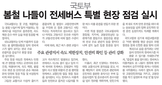 - 국토부, 봄철 나들이 전세버스 특별 현장 점검 실시