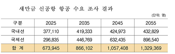 - 새만금 신공항 들어서면 2025년 67만명 이용 예상