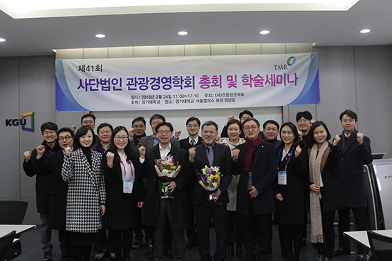 지난 달 24일 사단법인 관광경영학회 정기총회에 참석한 회원들이 김천중 용인대 교수(사진 앞 줄 중앙)를 제 12대 ...[제1020호]2018-03-09 09:54