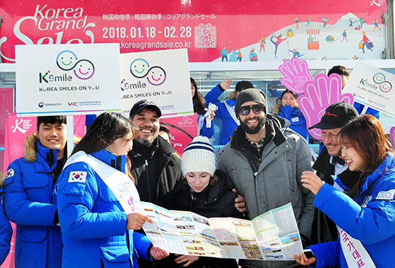 지난 2월 7일 한국방문위원회가 강릉역 외부에 설치한‘찾아가는 여행자 서비스센터’를 방문한 외국인 관...[제1020호]2018-03-09 10:35