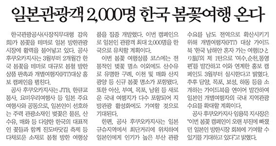 - 일본관광객 2,000명 한국 봄꽃여행 온다