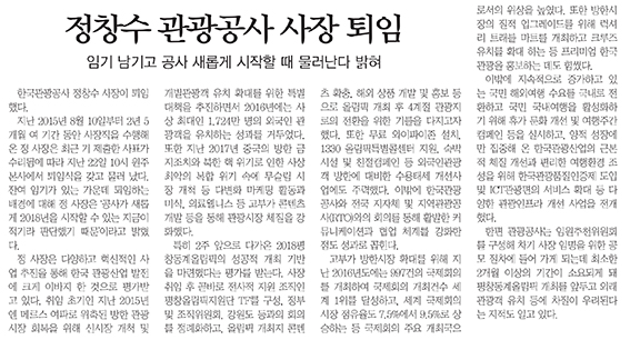 한국관광공사 정창수 사장이 퇴임...[제1016호]2018-01-26 12:24