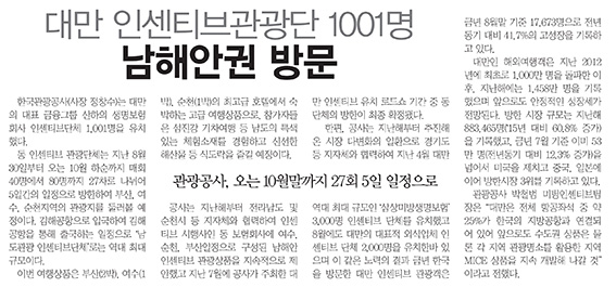 - 대만 인센티브관광단 1001명 남해안권 방문