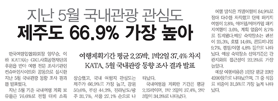 KATA, 5월 국내관광 동향 조사 결과 발표
