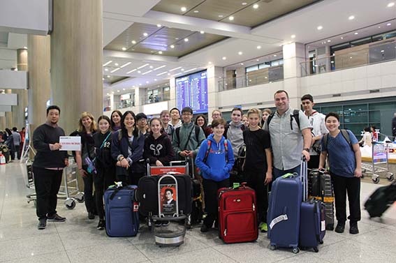 캐나다 중학생 한국 수학여행단이 지난 8일 인천국제공항에 도착하여 기념 사진을 촬영하고 있다.