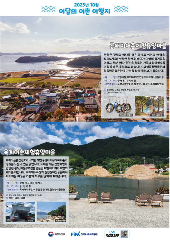 - 해수부, 10월의 어촌여행지 2곳 선정