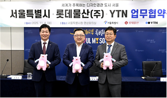왼쪽부터 장재훈 롯데물산㈜ 대표이사, 김성보 서울시 행정2부시장, 정재훈 YTN 전무이사.