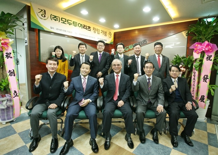 모두투어리츠가 본격 행보에 앞서 지난 21일 창립기념식을 진행했다. 앞 열 오른쪽부터 시계방향으로 홍기정 모두투...