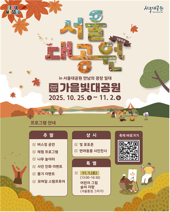 - 서울대공원, 10/25~11/2까지 만남의 광장 일대에서 가을단풍...
