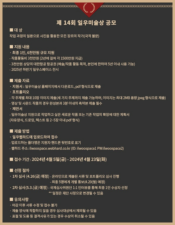 - 한진그룹, 일우재단, 제14회 <일우미술상> 공모