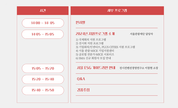 2024 서울 MICE 지원 설명회 프로그램 표.