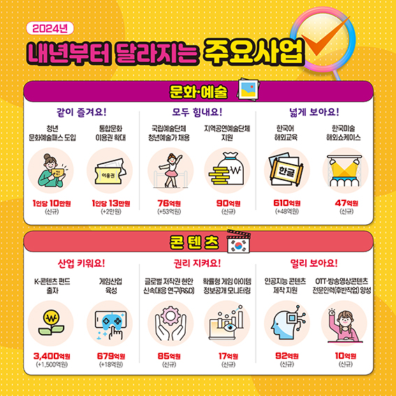 - 2024년 문화체육관광부 예산 6조9545억 원으로 확정