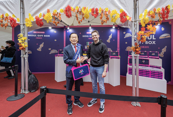 서울 기프트박스(서울과자) 홍보 프로모션에 외국인이 참가하고 있다.