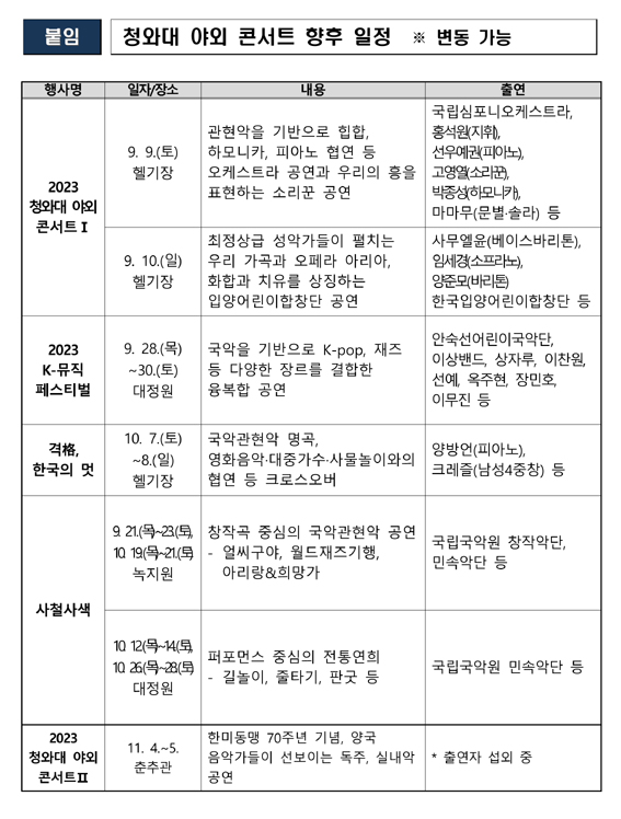 - 9월13일부터 21일까지 청와대 야간 관람 운영