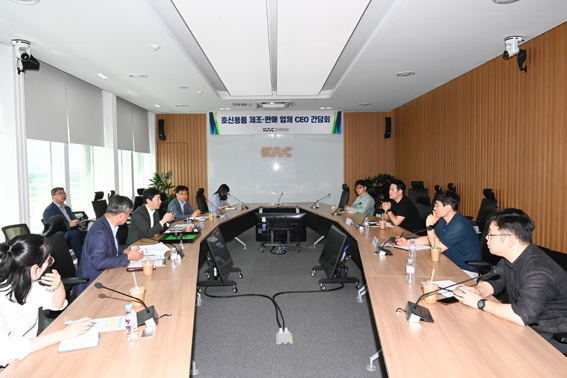 윤형중 한국공항공사 사장(왼쪽열 중앙)이 지난 8월 17일, 서울 강서구 한국공항공사 본사에서 호신용품 제조·...[제1220호]2023-08-18 10:33