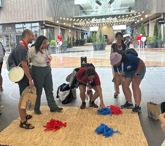 국립세계문자박물관에서 제기 차기를 하는 레바논 스카우트 대원들.