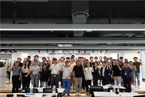 서울형 관광산업 고용장려금 지원 사업 간담회 참가자들이 단체 기념사진을 촬영하고 있다.