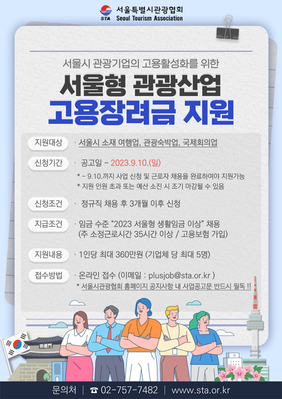서울시 2023년 서울형 관광산업 고용장려금 사업, 오는 9월 10일까지 접수