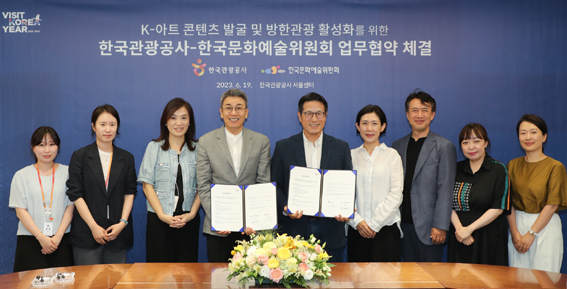 이재환 한국관광공사 부사장(왼쪽 네 번째)과 정병국 한국문화예술위원회 위원장(오른쪽 다섯 번째)이 지난 6월 19일 ...[제1215호]2023-06-20 11:18