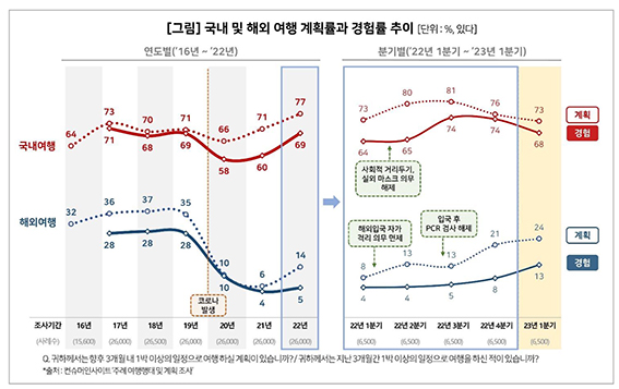 국내여행, 코로나19 이전 넘어섰다가 다시 소폭 하...[제1210호]2023-04-27 11:22