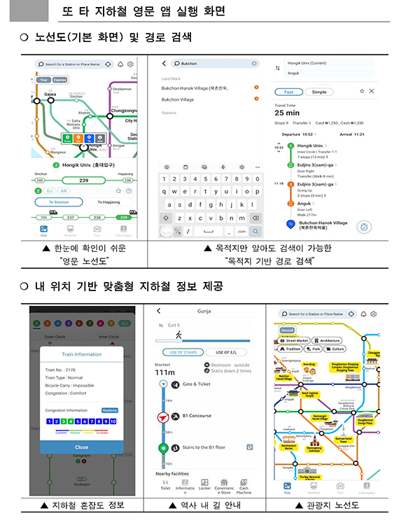 - 앱 하나로 지하철 출발~도착까지 외국인이 필요한 정보를 편리하게 이용