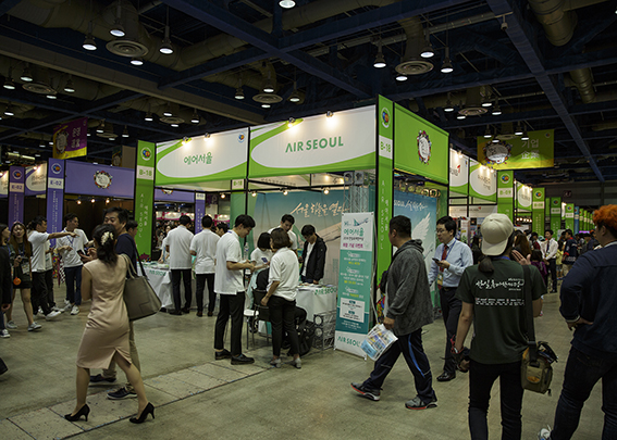 에어서울은 오는 24일 코엑스에서 개최되는 한일축제한마당에 참여해 다양한 이벤트를 선보인다. <사진은 지난해 한일축제한마당에 참여한 부스의 모습>
