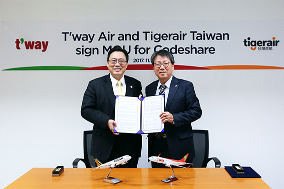 지난 2013년 설립된 타이거에어 타이완은 대만 최초의 저비용항공사로서 현재 대만은 물론, 일본과 마카오까지 다양한 노선을 운항하고 있다. 양사는 이번 업무 협약을 통해 신규 노선 개발과 공동운항 등 고객 만족을 위한 상호 발전적 관계를 구축하기로 했다.