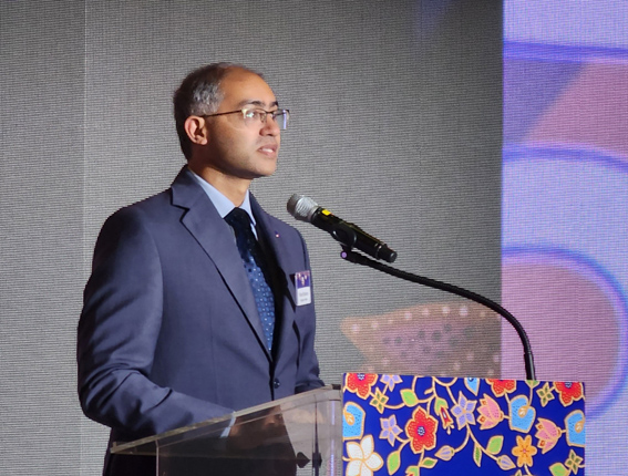 비노드 칸난(Vinod Kannan) 싱가포르항공 세일즈 & 마케팅 수석 부사장이 지난 11월 11일 포시즌호텔에서 열린 싱가포르항공 한국 취항 50주년 기념 VIP 디너 행사에서 환영사를 하고 있다.