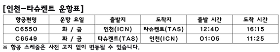 한편, 중앙아시아 지역에 대한 한국 내 관심이 지속적으로 높아지는 가운데, 센트럼항공은 경쟁력 있는 운임과 효율적인 스케줄, 쾌적한 서비스를 바탕으로 한국 고객들에게 새롭고 합리적인 항공 여정을 제시하고 있다. 특히 타슈켄트를 경유한 노선 운영을 통해 러시아 및 튀르키예(이스탄불) 등 다양한 지역으로의 연계 이동이 가능해, 여행 목적과 일정에 따라 보다 폭넓은 선택지를 제공한다.