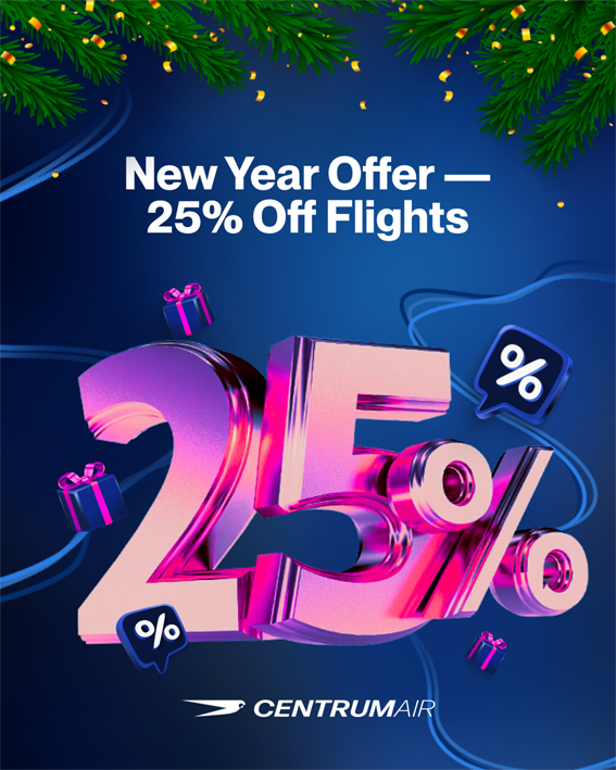 센트럼항공이 2026년 신년을 맞아 전 노선을 대상으로 한 25% 할인 프로모션을 진행한다.