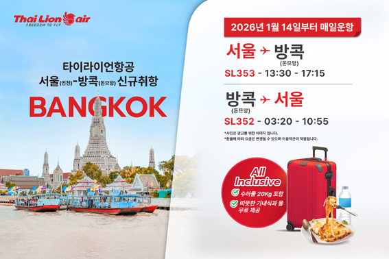 한편, 타이라이언항공은 인천-방콕(돈므앙) 노선을 매일 운항한다.