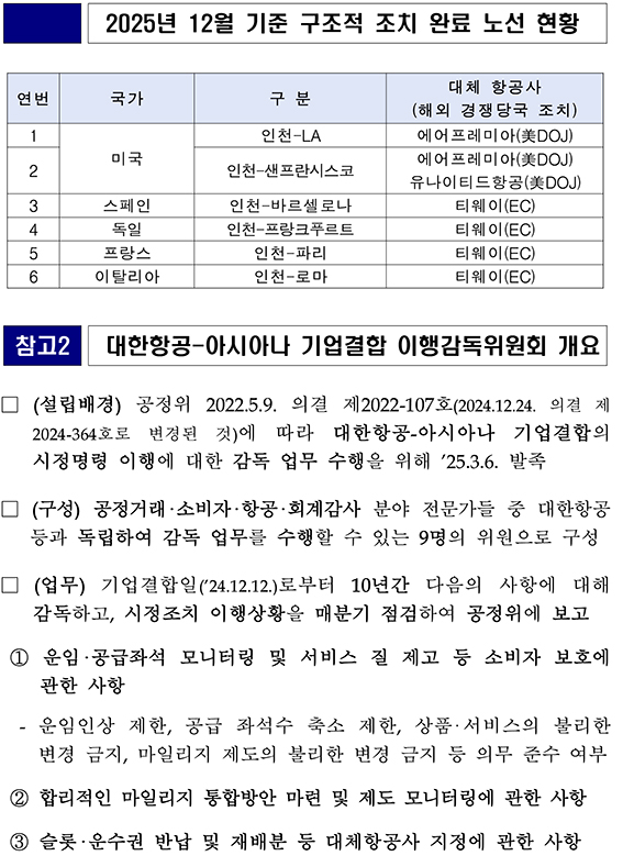 국토교통부와 공정거래위원회(이하 ‘공정위’)는 대한항공-아시아나항공의 기업결합에 따라 공정거래위원회가 부과한 구조적 시정조치의 일환으로, 대한항공‧아시아나항공의 주요 독과점 노선에 대한 대체항공사를 선정했다.
