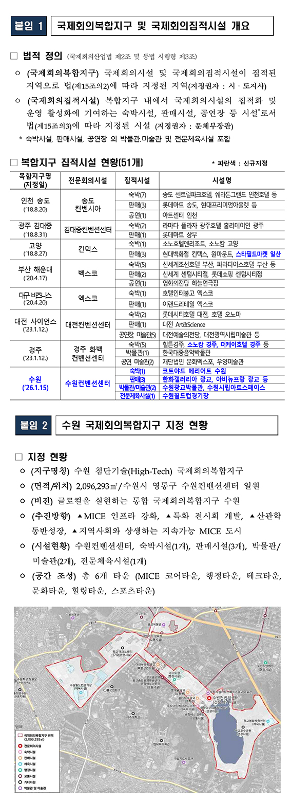 수원, 고양, 경주 복합지구에 국제회의집적시설 10개소 추가 지정