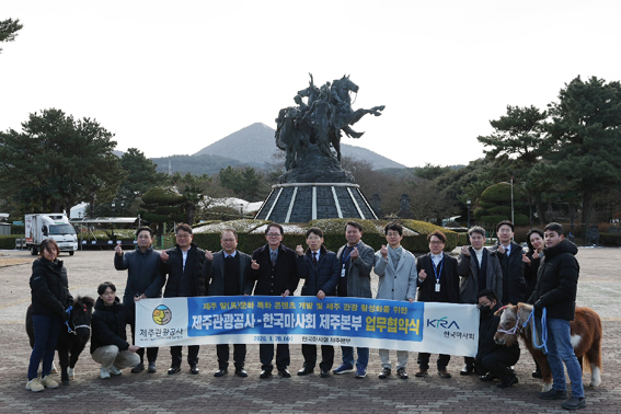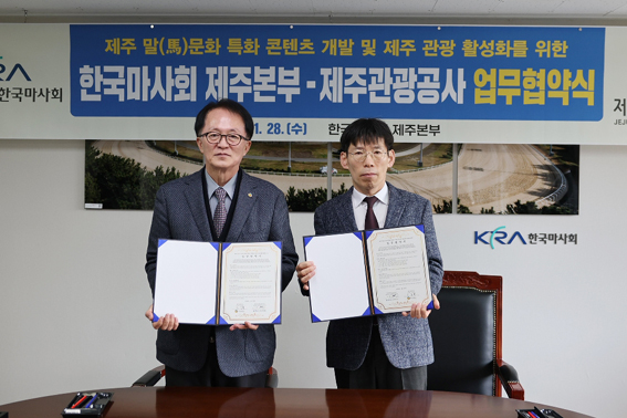 제주관광공사(사장 고승철)는 지난 1월 28일 렛츠런파크 제주에서 한국마사회 제주본부(본부장 유병돈)와 제주 말(馬) 문화 특화 콘텐츠 개발 및 제주관광 활성화를 위한 업무협약(MOU)을 체결했다.