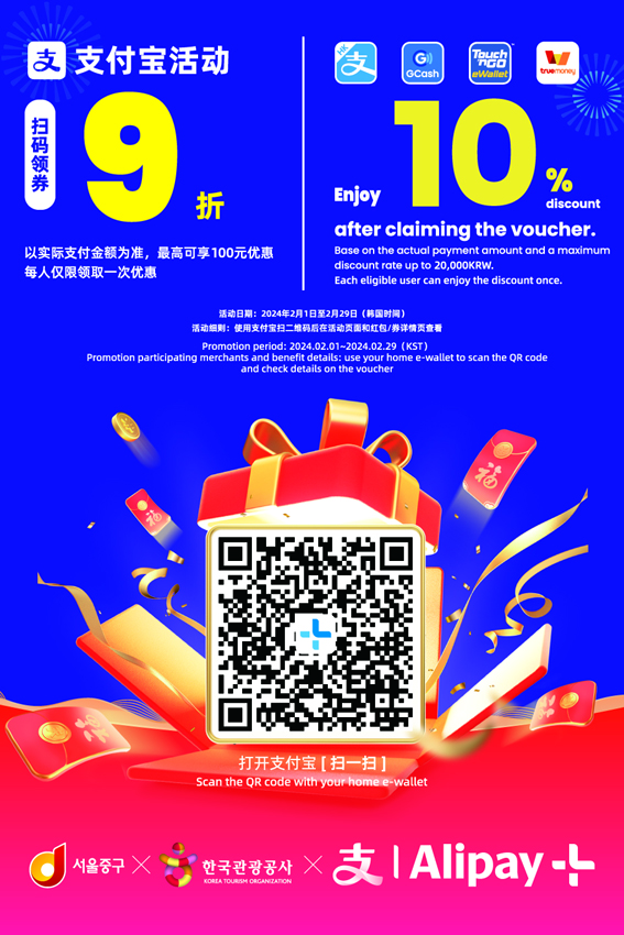 또한, 한국관광공사는 지난 2월 1일부터 한 달간 중국 개별여행객 대상으로 서울 명동 소재 알리페이 플러스 제휴 가맹점 및 전국 제로페이 가맹점에서 최대 20% 할인 혜택을 받을 수 있는 모바일페이 프로모션을 진행 중이다.