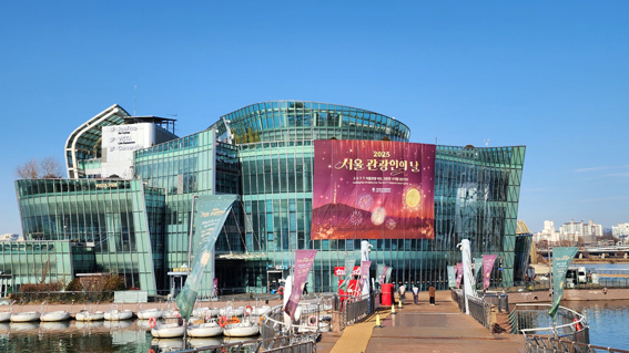 세빛섬 플로팅 아일랜드에 걸린 2025 서울관광인의 날 알리는 대형 현수막.