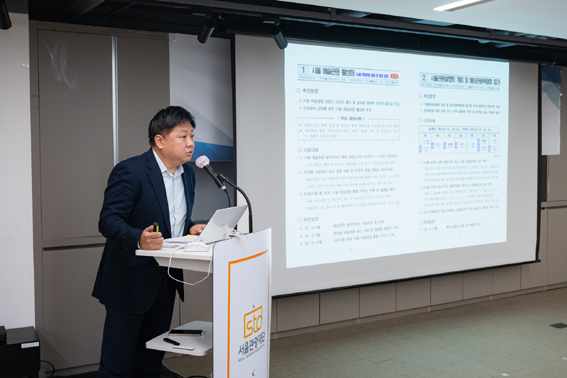 이준 서울관광재단 글로벌관광산업팀장이 재단의 주요 사업을 발표하고 있다.