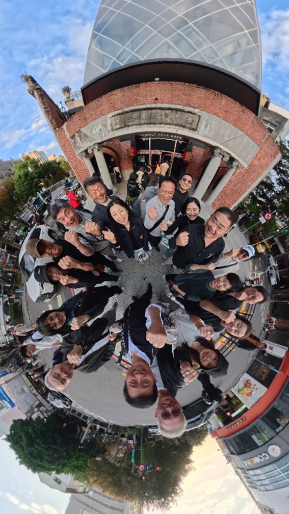 KATA 타이중시 팸투어단이 특수 카메라로 단체 사진을 촬영하고 있다.