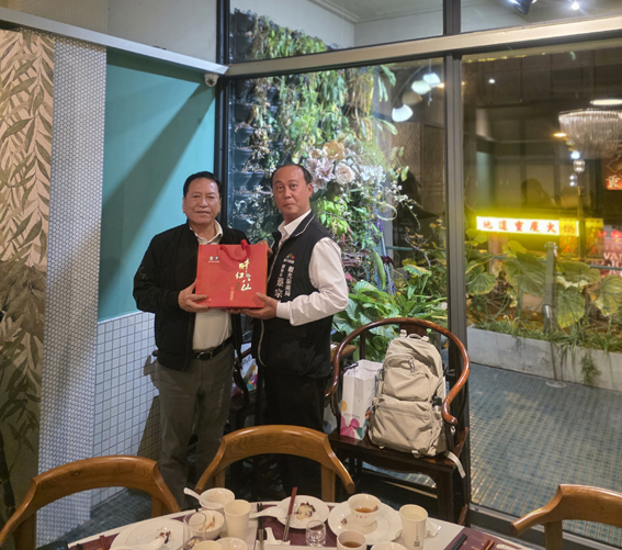 첸메이슈 타이중시 관광여유국장(오른쪽)이 왕덕신 KATA 이사(왼쪽)에게 기념품을 전달하고 기념사진을 촬영하고 있다.