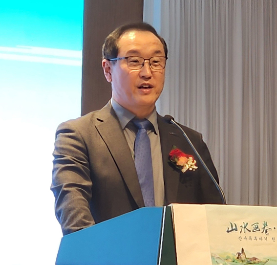 박강섭 서울관광재단 이사장이 천저우시 문화관광 설명회에서 축사를 하고 있다.