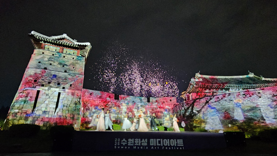 ‘2025 수원화성 미디어아트 페스티벌’이 화서문을 무대로 AI기술이 접목된 화려하고 웅장한 영상이 관람객들에게 감동을 전해주고 있다.